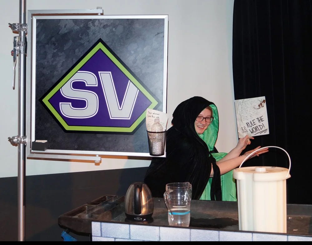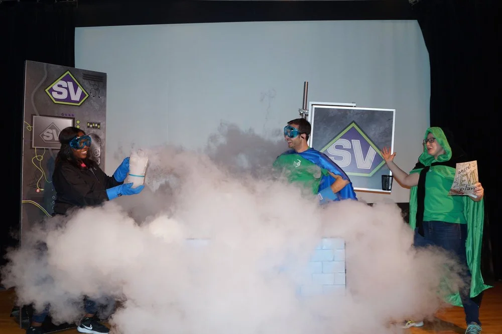 Science Hero Saves the Day is a 20 minute show that is put on in the Science Theater. The show teaches kids about liquid nitrogen and the scientific process in a fun and exciting way.